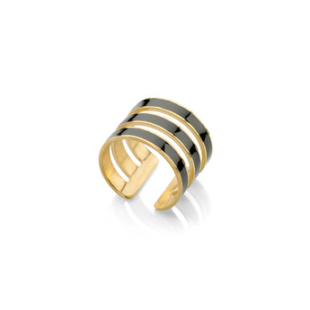 L'anello Circum è realizzato in argento 925 e placcato in oro giallo 24kt (galvanica). La smaltatura a mano lo rende un pezzo unico.