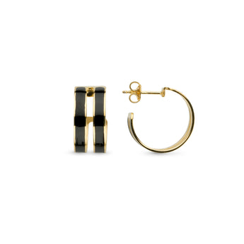 Un tocco di modernità e stile per le tue orecchie. Gli Orecchini Circum Double presentano un design a cerchio aperto con due eleganti fasce in smalto, applicate a mano con precisione su una struttura dorata. Il contrasto tra l'oro e lo smalto li rende un accessorio versatile e di grande impatto.