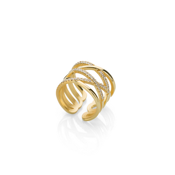 Abbraccia il lusso e la modernità con l'Anello Luxury Intertwining regolabile. Questo gioiello, realizzato in Argento 925, presenta una placcatura in oro 18 carati che ne esalta la bellezza.