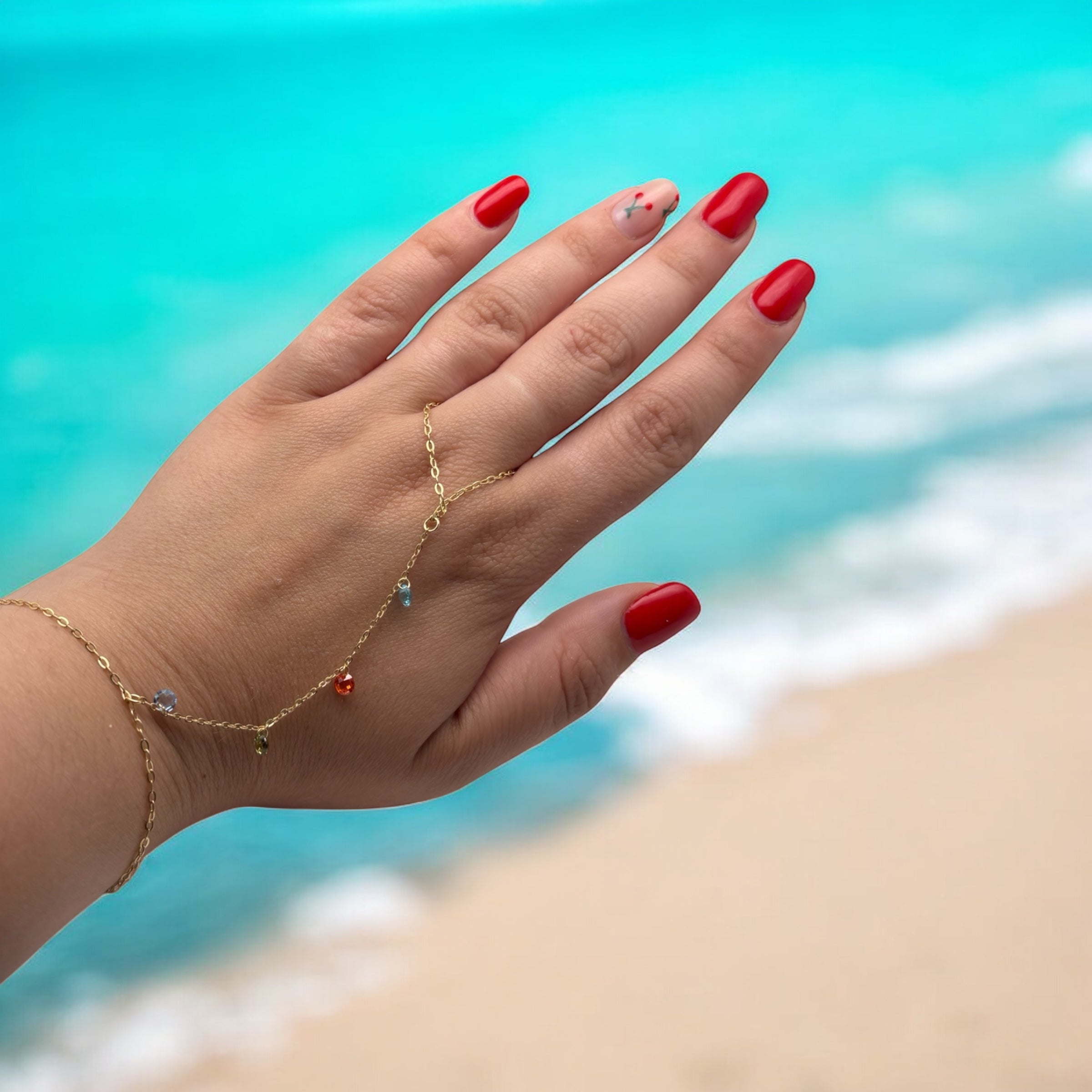 Il Baciamano Rainbow è un gioiello in Argento 925 placcato con Oro 24K, impreziosito da pietre colorate. Realizzato a mano in Italia, è anallergico, privo di nichel e resistente all’acqua. Ideale per chi cerca sicurezza e comfort sulla pelle, mantiene la sua brillantezza senza annerirsi né causare irritazioni.