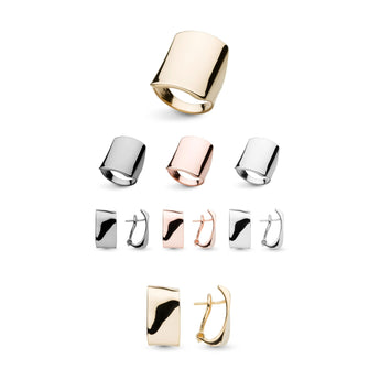 Orecchini e anelli Lucidi a specchio in argento 925 placcato (giallo – bianco – rosa – nero) 18kt