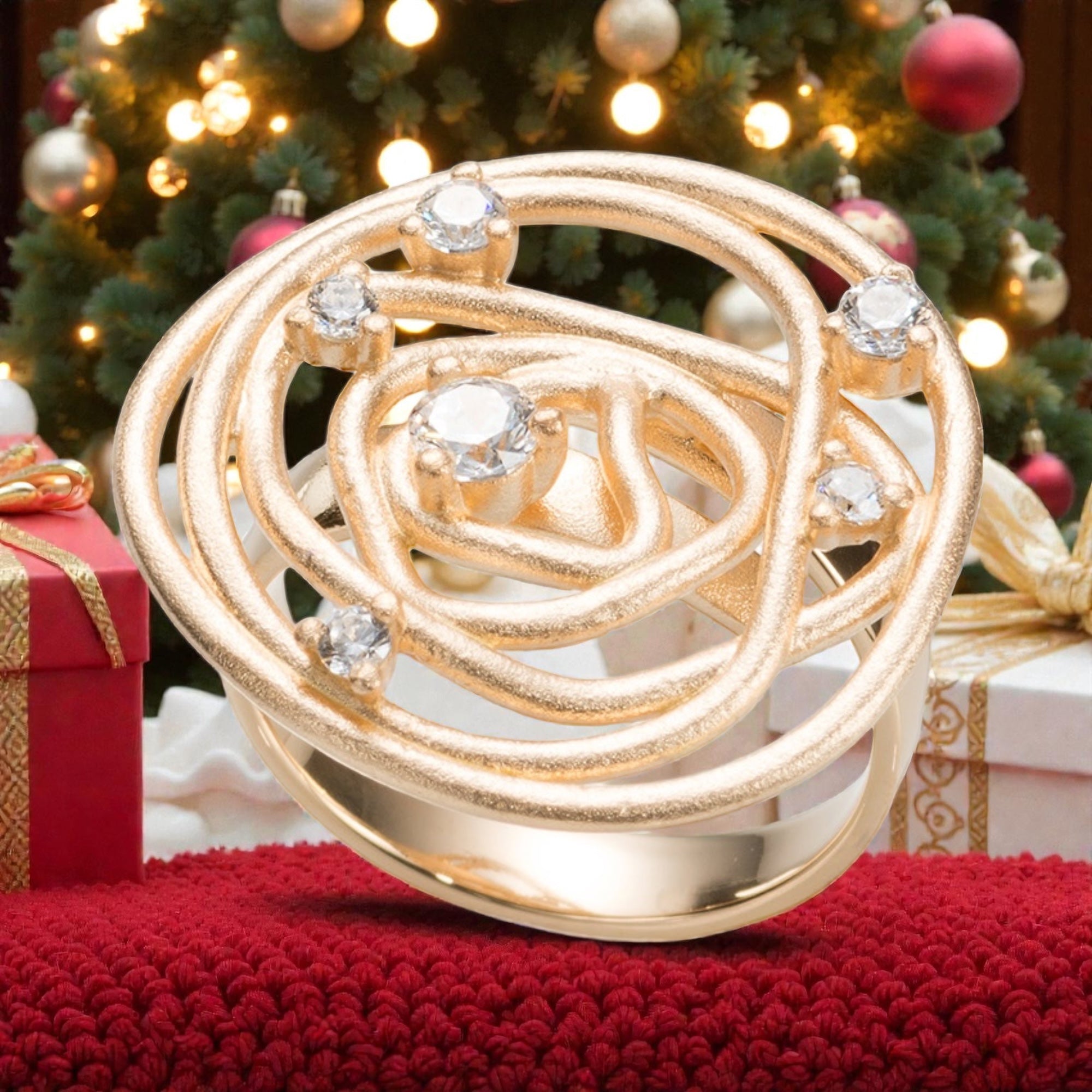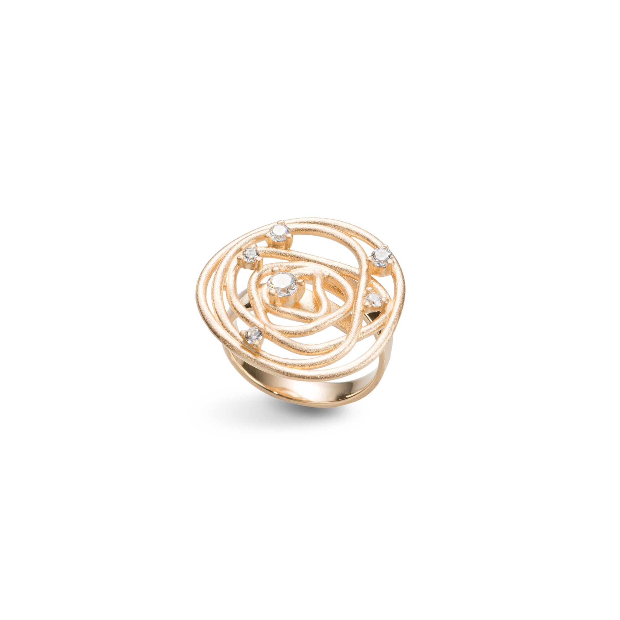 Elegant ring with a sculptural tangle design in gold-plated silver with a warm finish. The dynamic intertwining is embellished with dazzling zirconia stones . A modern and refined statement piece.