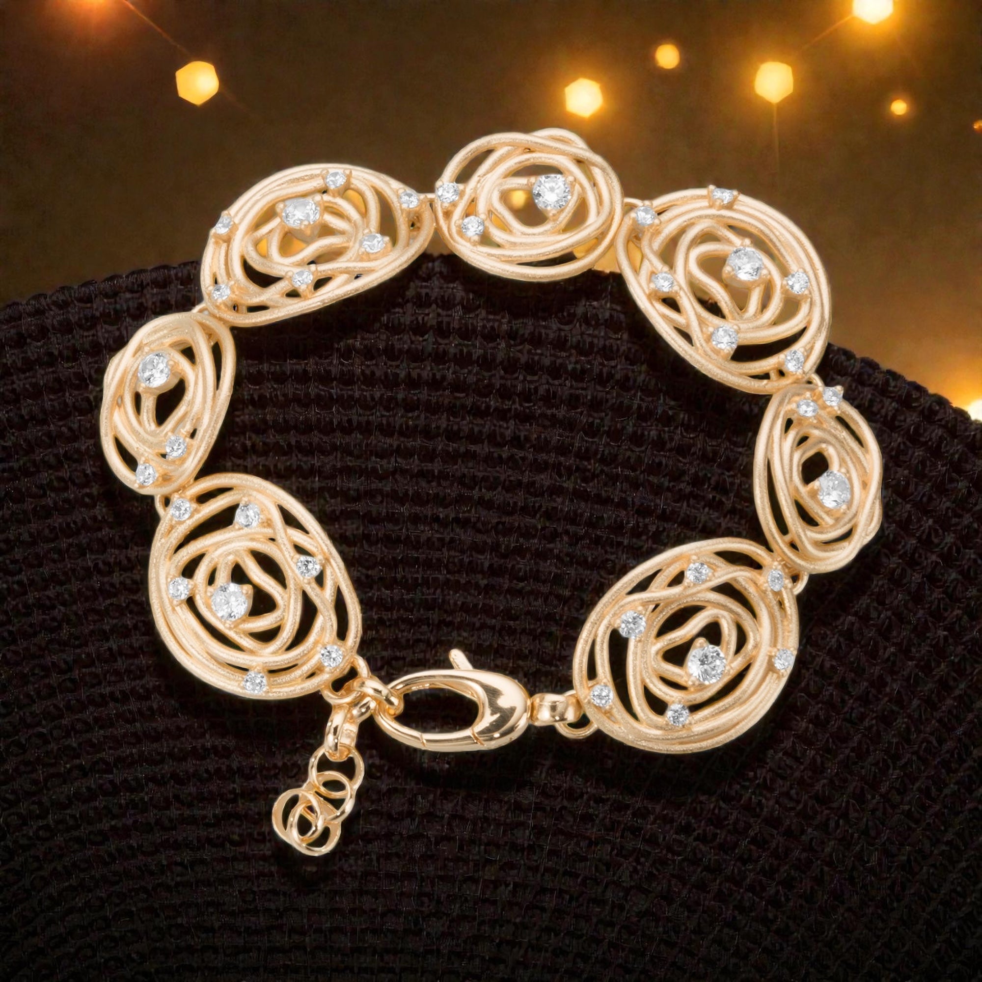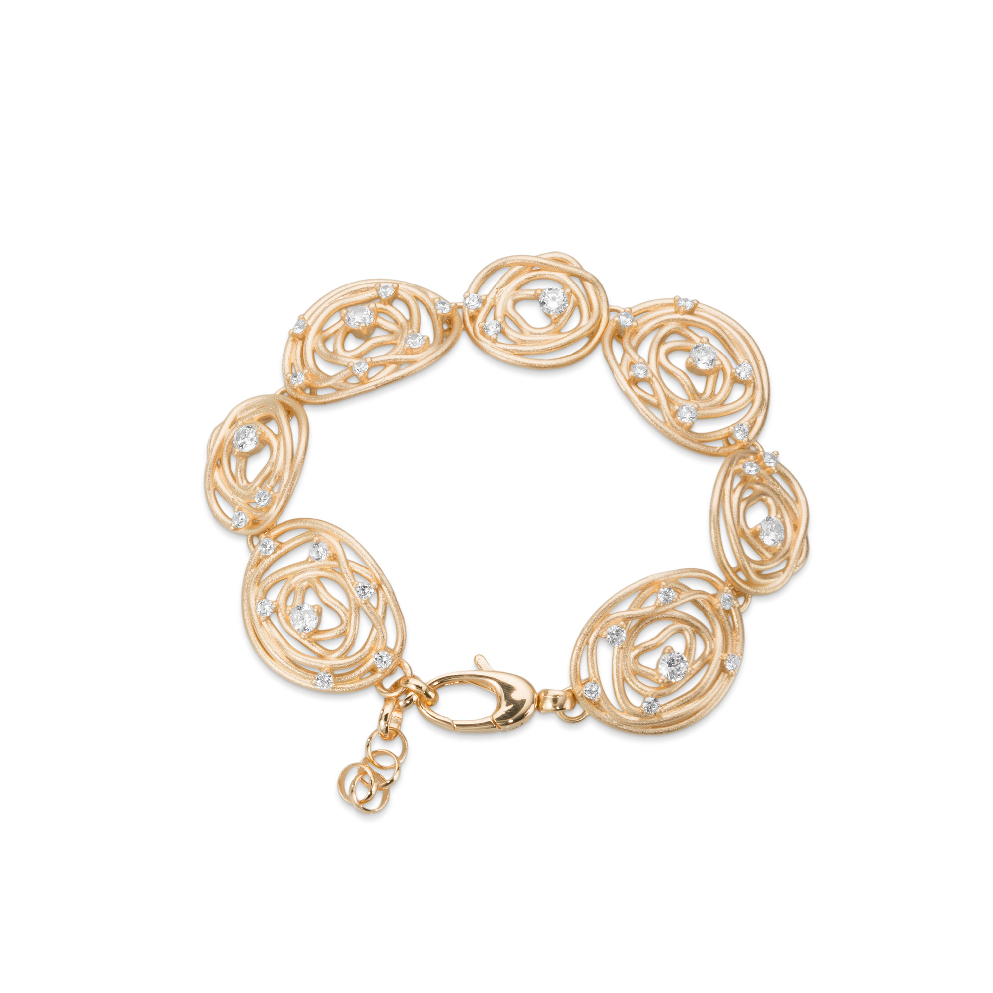 Elegant bracelet with a sculptural tangle design in gold-plated silver with a warm finish. The dynamic weave is embellished with dazzling zirconia stones . A modern and refined statement piece.