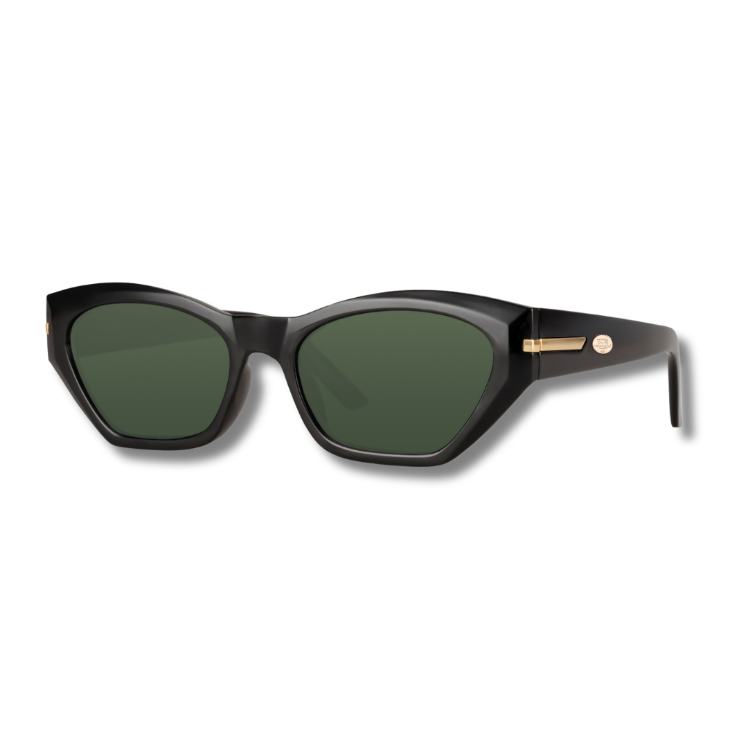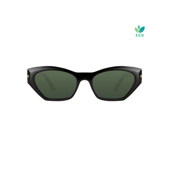 Pantera sunglasses offer 100% category 3 UV protection, perfect for protecting your eyes in style. Polycarbonate lenses ensure durability and clarity, while the black frame, made from 100% recycled polyester, combines sustainability with modern design. The green lenses add a touch of personality, and the perfectly balanced size ensures comfort and an ideal fit for every woman. Choose Pantera for an elegant look without sacrificing protection.