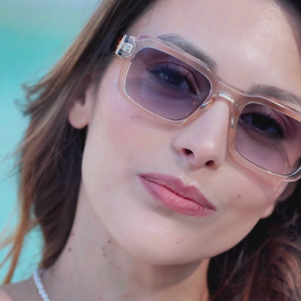 Dawn sunglasses offer 100% category 2 UV protection, ideal for protecting your eyes in style. Made from high-quality recycled materials, the clear polyester frame and translucent blue lenses ensure comfort and environmental friendliness. Suitable for both men and women, they combine modern design and sustainability for those seeking a functional and elegant accessory. Designed for a perfect fit, Dawn is the ideal choice for those who want protection and style every day.
