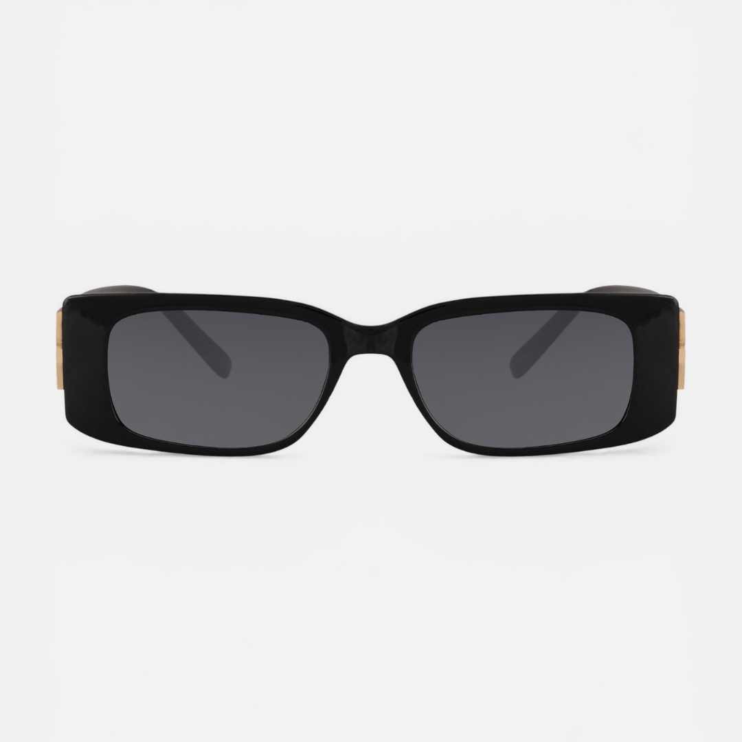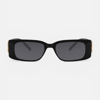 Midnight Monogram si distingue per la sua silhouette rettangolare ultra-contemporanea, scolpita in policarbonato nero profondo per un effetto di assoluta intensità. Il dettaglio iconico dell'asta, un fregio metallico dorato finemente lavorato, eleva il design rendendolo un vero gioiello da indossare. Dotato di lenti in policarbonato di Categoria 3 con protezione UV totale, questo occhiale non solo scherma lo sguardo con autorità, ma definisce il volto con una linea decisa e sofisticata. Pensato per la donna che vive ogni istante come un red carpet, Midnight Monogram è l'accessorio definitivo per chi non teme di restare al centro dell'attenzione. Ogni occhiale arriva con il suo sacchetto cucito a mano con il logo in argento.