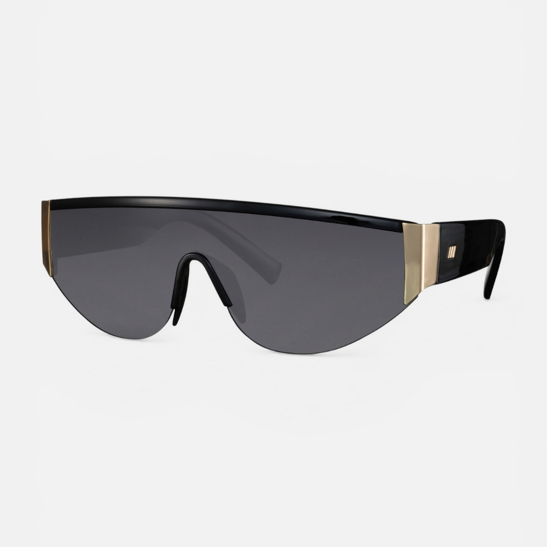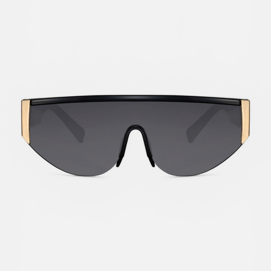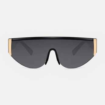 Un'audace espressione di lusso contemporaneo, dove l'intensità del nero profondo incontra la preziosità scultorea del metallo. L'occhiale a mascherina Capricci è un tributo all'architettura futurista, un pezzo d'arte che sfida le convenzioni e ridefinisce il concetto di eleganza avvolgente. Una lente unica, continua, che si fonde con la montatura in policarbonato, creando una silhouette aerodinamica e magnetica. Un sofisticato connubio tra la leggerezza della struttura e l'innata nobiltà del rame, per un accessorio che è pura essenza di stile. Le lenti Categoria 3, nere come l'ossidiana, offrono una protezione UV al 100% e uno sguardo misterioso, impenetrabile. L'occhiale presenta anche il logo di Capricci Store in argento placcato oro sulla stanghetta esterna. Ogni occhiale arriva con il suo sacchetto cucito a mano con il logo in argento.