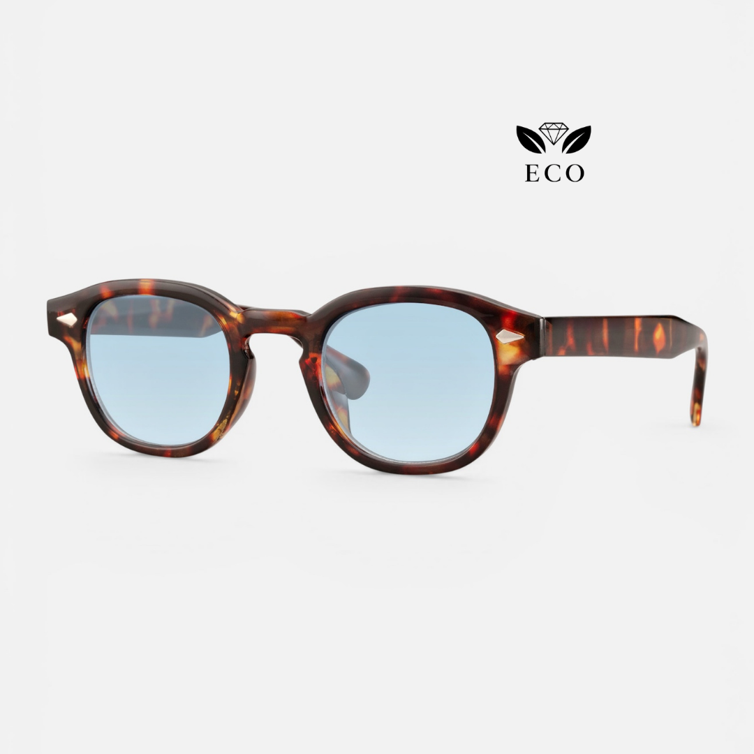 Poet sunglasses offer 100% UV protection with durable and lightweight polycarbonate lenses. The brown frame, made from 100% recycled polyester, combines style and sustainability. The unisex design is a perfect fit for both men and women, ensuring comfort and durability. The blue lenses add a touch of elegance while protecting the eyes from intense sunlight. Designed for a perfect fit, they are the ideal accessory for those seeking quality and respect for the environment.