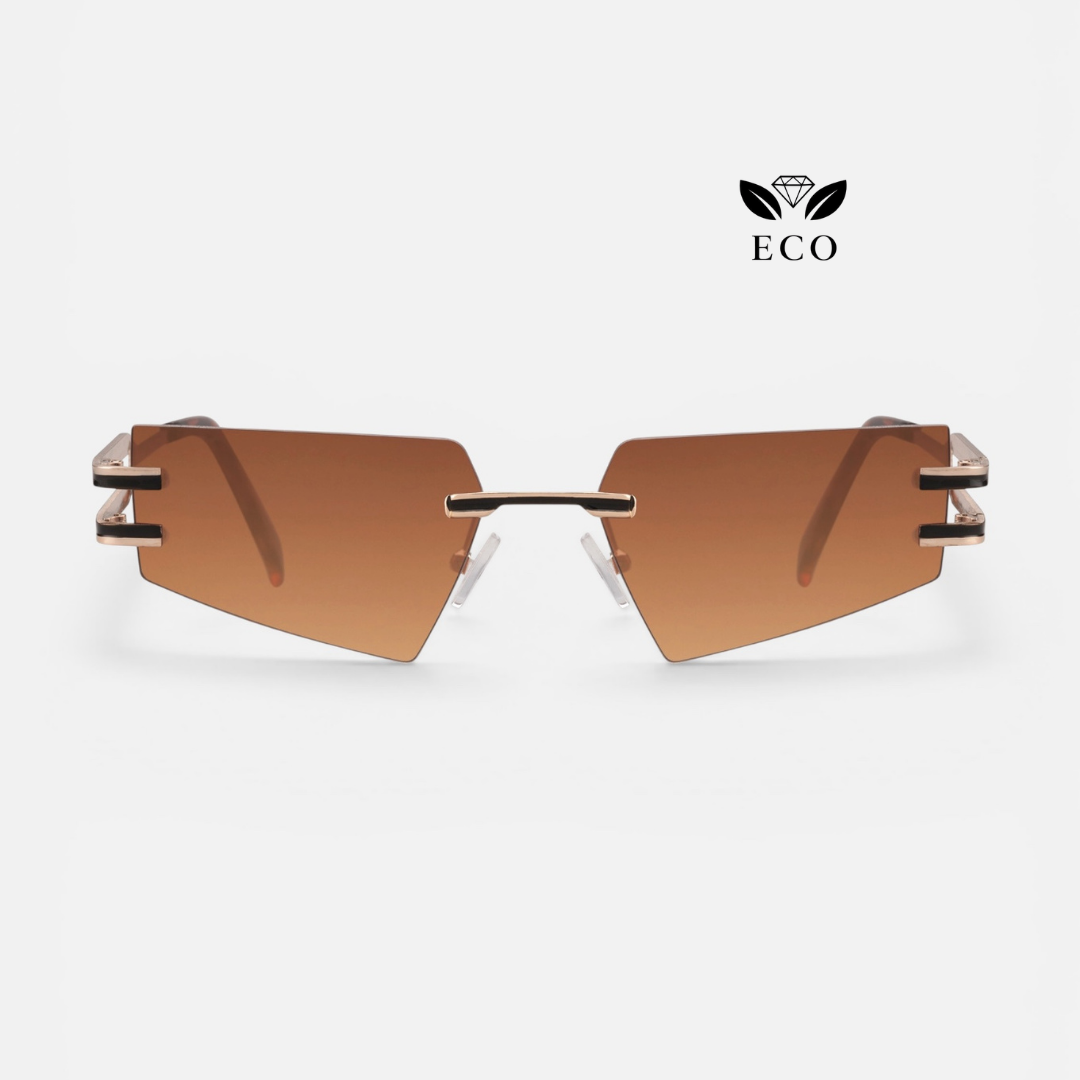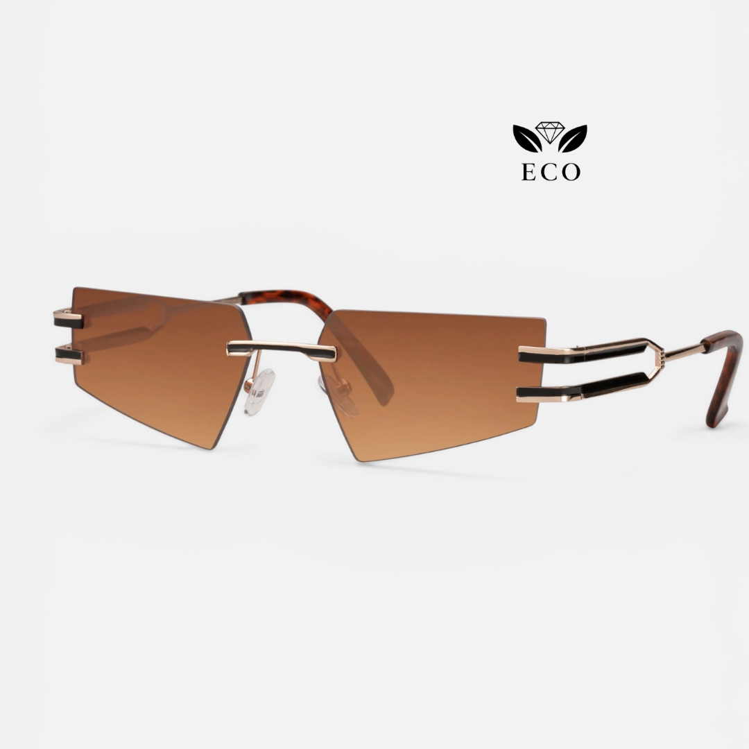 Rebel sunglasses combine style and protection thanks to their polycarbonate lenses with 100% category 3 UV protection. The gold-toned copper frame ensures durability and a sophisticated look, perfect for men and women who want to stand out. Measuring 14.3 cm wide and featuring 5.5 cm brown lenses, they offer comfort and clear vision in any bright light. Choose Rebel to protect your eyes with elegance.