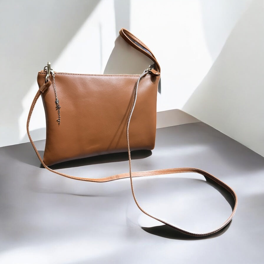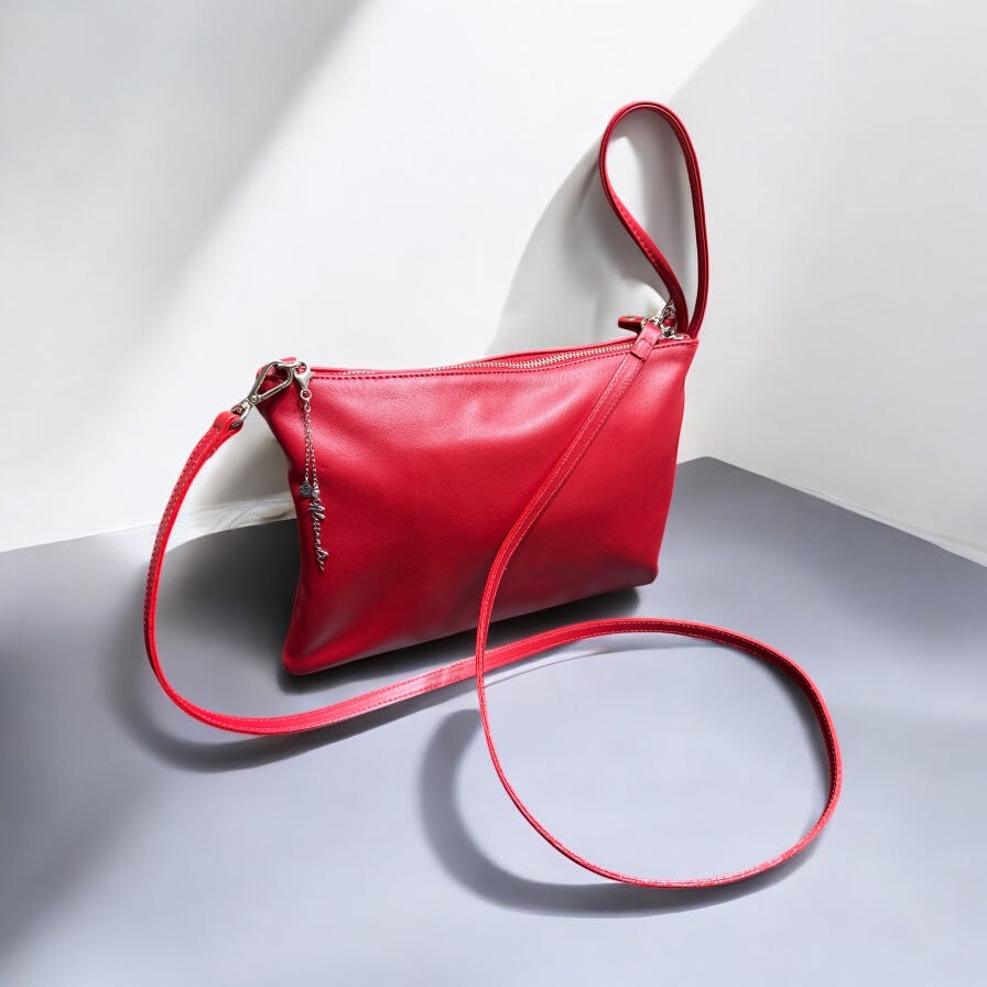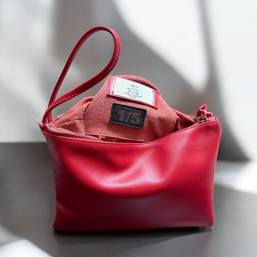 Realizzata in 100% pelle di alta qualità, questa borsa unisce stile e funzionalità in un design compatto e sofisticato. L’interno è foderato con tessuto di recupero, una scelta sostenibile che non rinuncia al pregio.