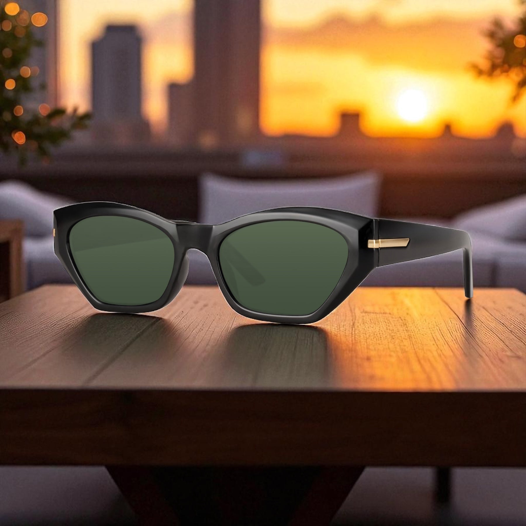Gli occhiali da sole Pantera offrono una protezione UV al 100% di categoria 3, perfetti per proteggere i tuoi occhi con stile. Le lenti in policarbonato garantiscono resistenza e chiarezza visiva, mentre la montatura nera, realizzata al 100% in poliestere riciclato, combina sostenibilità e design moderno. Il verde delle lenti aggiunge un tocco di personalità, e le dimensioni perfettamente bilanciate assicurano comfort e una vestibilità ideale per ogni donna. Scegli Pantera per un look elegante senza rinunciare alla protezione.